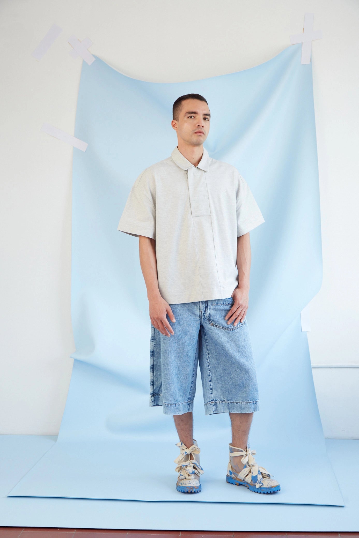 La silueta boxy de esta camisa está pensada para brindar libertad de movimiento y frescura, con una caída natural gracias al peso liviano del algodón. Tiene cuello camisero clásico y una perilla ancha en el frente que oculta una botónadura de tres botones, aportando un acabado limpio. Los hombros caídos y las mangas amplias acentúan su forma relajada. El ruedo escalonado es más largo en la espalda, con cortes angulados en los costados que le dan carácter geométrico. Esta prenda sin género, hecha en Colombia, es ideal para quienes valoran la funcionalidad, el diseño contemporáneo y los materiales nobles.